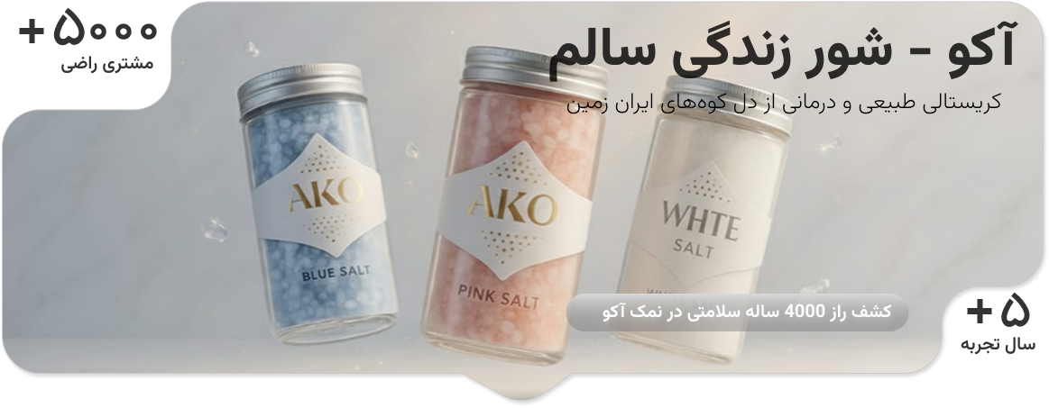 اما نمک کوهستانی آکو هیچگونه مواد سمی و میکروپلاستیک نداره چون این نمک 250 میلیون سال پیش تشکیل شده که هیچگونه انسان و آلودگی اون زمان نبوده